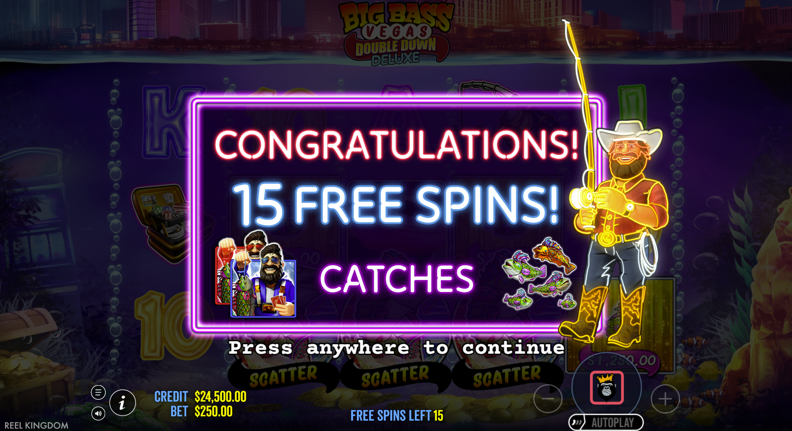 • Guaranteed Persistent Angler: Fisherman Wild remains fixed on reel 5 throughout free spins ensuring automated collections